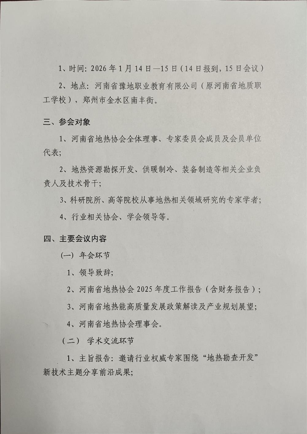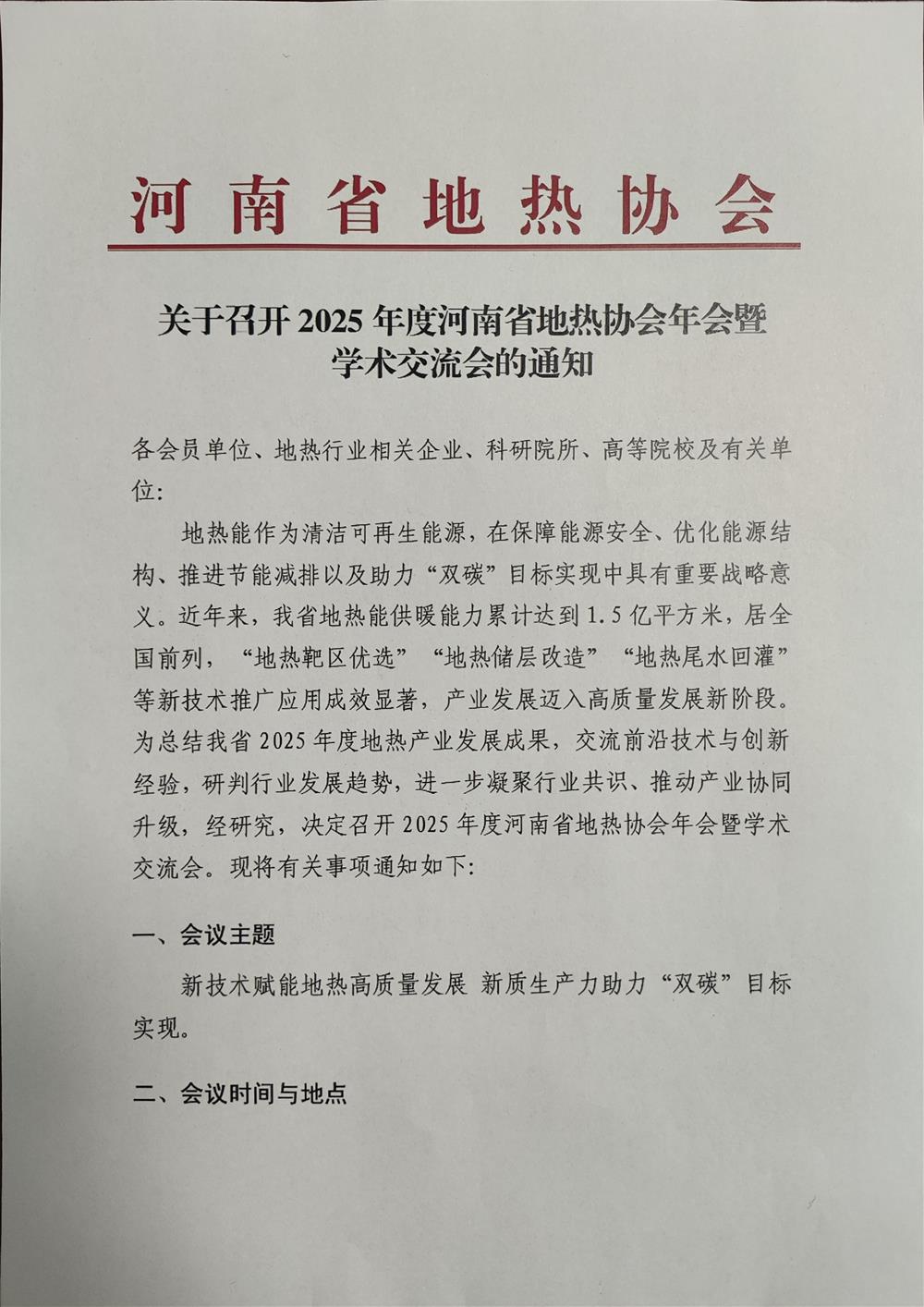 关于召开2025年度河南省地热协会年会暨 学术交流会的通知